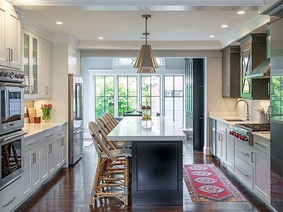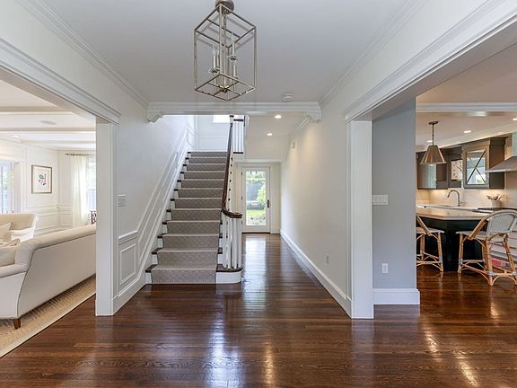 OPEN HOUSE CANCELED...Impressive 1920's center entrance brick Colonial with slate roof on a quiet street in the desirable West Newton Hill area. Renovated in 2017 and designed by one of Newton's well-known design-build companies, it is the perfect mix of old world charm and modern day living. The sun-filled home with open floor plan offers superb entertaining space. The welcoming foyer leads to the 14x28 living room w/dining area and fireplace, home office, sun room/playroom, mudroom & powder room. The expanded kitchen/family room with custom cabinetry, high end appliances, wet bar and gas fireplace has direct access to a bluestone patio and expansive level yard. The 2nd floor features three gracious bedrooms, laundry and the primary bedroom/bath with heated floors and steam shower. Two additional bedrooms and a full bath are on the 3rd floor. Finished basement includes a half bath, additional laundry and exercise room. Close to all major routes and Brae Burn Country Club, Peirce Schoo