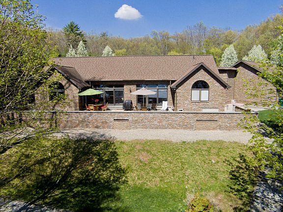 Have you been waiting for the perfect lakefront on a large private 2.2 acre parcel with 250' of level abundant lake frontage that is not part of a community? Well, we have it! With over 300 evergreen trees surrounding its private estate, this oversized brick ranch has plenty of room to entertain both family and friends. Enjoy breathtaking lake views on the wide stone terrace or in the indoor hot tub. Stroll down the stone walkways from your lakefront to your own private dock on the big lake.