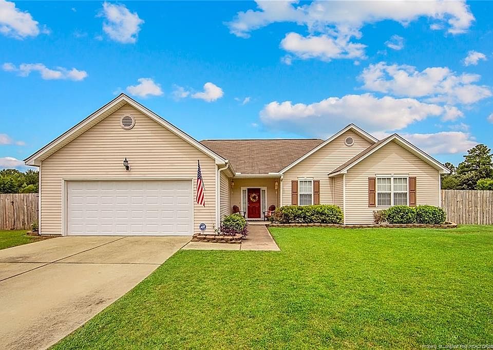 Perfect home in a country setting, perfectly situated on a cul-de-sac and located close to Fayetteville, I95, 295, Fayetteville and Fort Bragg; home has been meticulously maintained with many upgrades throughout and fantastic curb appeal; welcoming entrance with large foyer which opens to the great room w/gas log fireplace; this open concept floor plan features LVP flooring throughout the living area, custom trim finishes and opens to eat-in-kitchen with island and breakfast bar; three spacious bedrooms and two full baths; master suite w/walk-in closet; large privacy fenced backyard w/BBQ patio and plenty of room to enjoy country living in this beautiful community