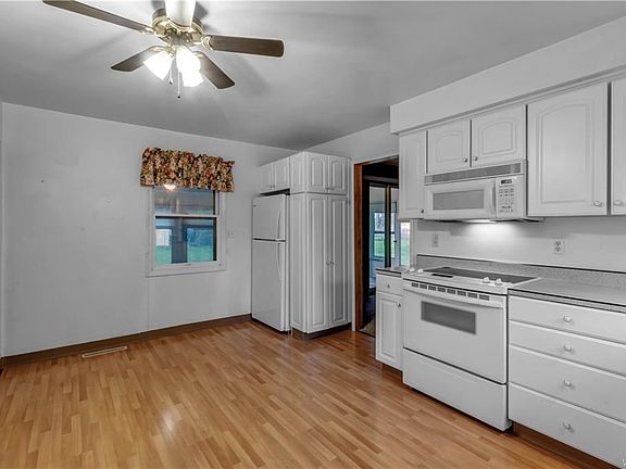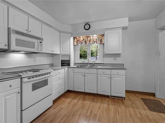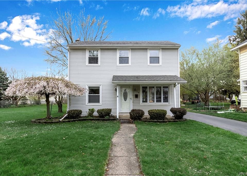 Well maintained and MOVE-IN READY vinyl sided 3 bedroom, 1 bath home situated on a double lot! Property features an updated fully applianced eat-in kitchen with loads of cabinets, pantry and double sink that opens to the large family or dining room. Bonus sunroom with ceiling fans, gas hookup for heating and a wall of windows overlooking the huge backyard! Bright living room with extra space for a small office, play area or at home learning. 3 good sized bedrooms with original hardwood floors, ample closet space, plus a huge walk-in closet in hallway. Full basement with glass block windows and workshop area. Washer and Dryer stay! Detached garage with electric door opener and storage area, extra long driveway for plenty of parking. Updates include High efficiency furnace and carpet 2019, HWT 2014, central air. Rocking chair style front porch, close to Transit Rd conveniences! BASIC STAR $698! *ALL OFFERS TO BE IN BY 5PM WEDNESDAY 4/21/2021.* Basic STAR $698!