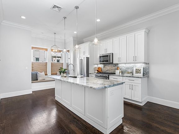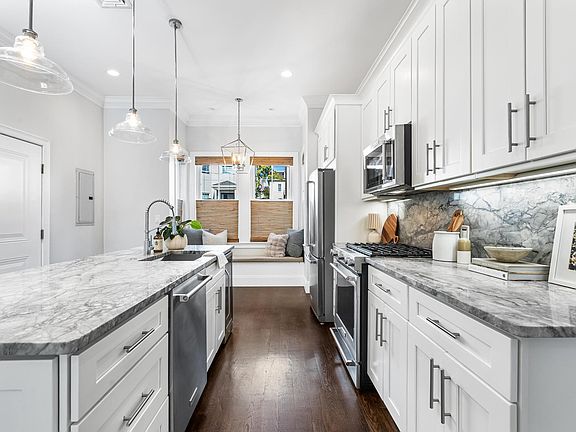 Available now! Welcome to this stunning 2 bed, 2 bath condo with a spacious layout and high-end finishes. The chef's kitchen boasts quartzite counters, stainless steel appliances, a wine fridge, and an oversized island perfect for entertaining. Hardwood floors and high ceilings flow into a bright living room, while a custom breakfast nook framed by bay windows offers the ideal spot for morning coffee. The lower level features a king-sized primary suite, second bedroom, full bath, laundry, and generous storage. Enjoy private outdoor living with both a deck and patio, plus an additional storage area. Ideally located near Assembly Row, Sullivan Square T stop, and major highways, this home is a must-see!