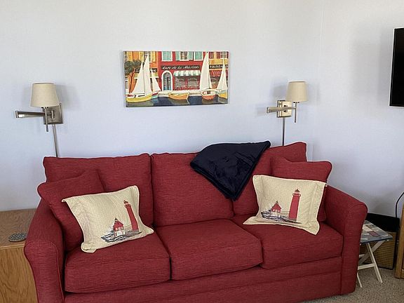 This 1st floor, 1 Bedroom condo with views of ManMade Lake & Lake Michigan is part of the Harbor Village Condo Association. Harbor Village is a Unique development in Manistee in Northern Michigan with its own Marina, Harbor, Channel to the Manistee River & Lake Michigan. Association includes Indoor Pool with Hot Tub & Fitness Center & Out Door Pool. Condo is just steps to the 5th Ave Beach on Lake Michigan. This Turn-key condo is a highly desirable Vacation Rental with 1 bedroom & deck overlooking the lake off the Dining Room. Views of the Lake from all main parts of the condo. Condo comes ready to use. 2024 Rentals were around $17,000. Owners use was equal to probably that same amount. Great investment property or just come enjoy !