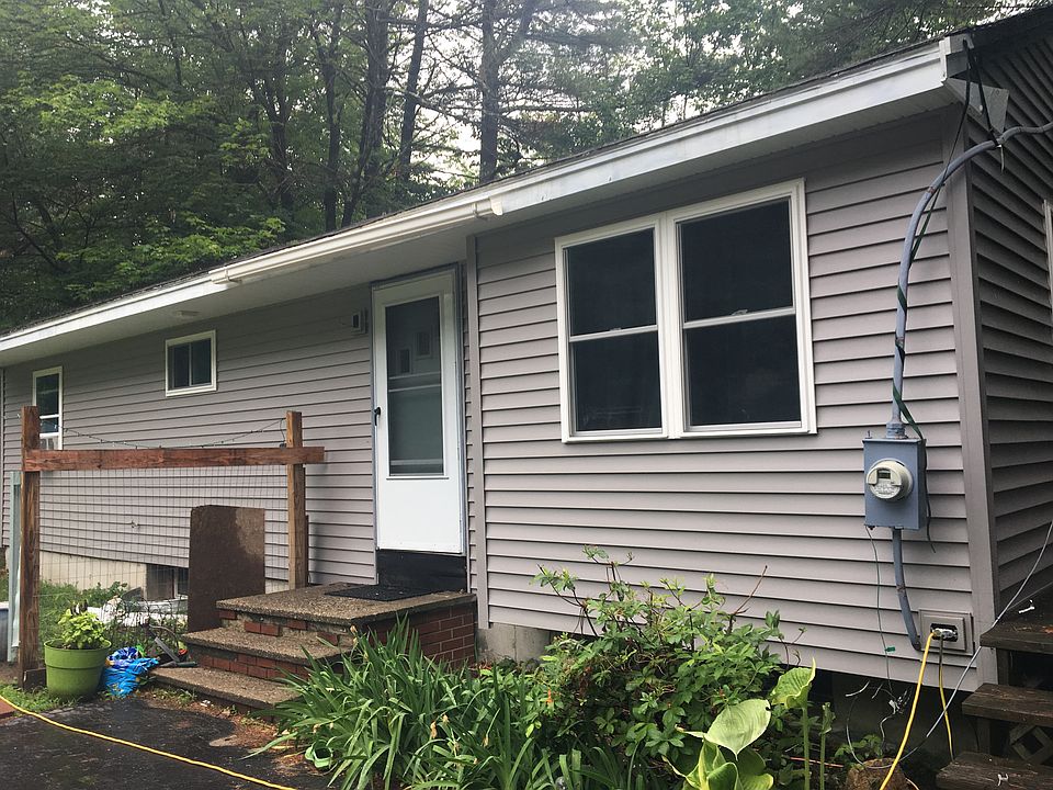 it is a small development off a major road, the house is located towards the end where there is only local traffic, there is a running brook behind the house, large pine trees provide shade. one side of house is an empty lot, nothing can be built behind house. only neighbors on one side and across street. close to shopping and schools.