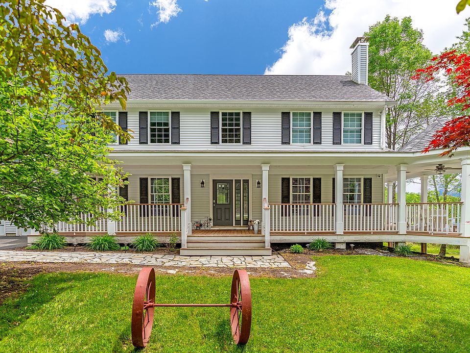 Listed by Madonna & Phillips Group. Beautifully renovated farmhouse style home with just over six acres of complete privacy in the coveted town of South Kent -- minutes to skiing, boating, shopping/dining in Kent's town center, and a quick commute to NYC by car or Metro North. The home offers an impressive wraparound cedar porch with dining area overlooking the park-like landscape with verdant views and fruit tree orchard. Inside, a bright and open interior boasts hardwood flooring throughout, a newly renovated kitchen with high-end appliances, family room with fireplace and sliders opening to an expansive rear deck. Among the four upstairs bedrooms is an ensuite master with walk-in closet. Turnkey and ready for entertaining, the property has ample room for an in-ground pool. Paved driveway, two-car garage, energy-efficient appliances, immaculate full height walk-out basement and easy to maintain grounds, makes this a perfect country getaway. 90-minute drive to NYC. Fifteen minutes to Metro North station. Five miles to restaurants, galleries and shopping in the walking town of Kent. Short drive to skiing at Mohawk Mountain. About 60 minutes to Butternut skiing and the Berkshires.