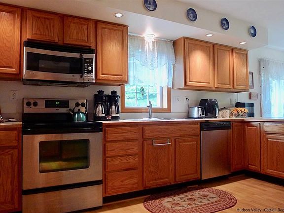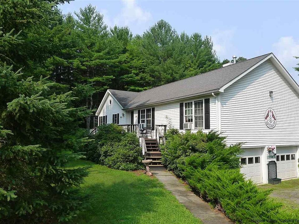 Lovely country ranch hidden behind tall trees on a quiet road. Easy one-level living is enhanced by a large dry basement with two car garage. Decks on front and side of house are a great place to relax or dine outside, and the spacious eat-in country kitchen is a cook's dream with lots of counter space and storage. Living room has vaulted ceilings and a fireplace, and is open to the dining room. Master suite is separate from the two additional bedrooms which offers a nice amount of privacy. Level yard is a great place to run around and the shed is a great place to store garden tools and equipment.