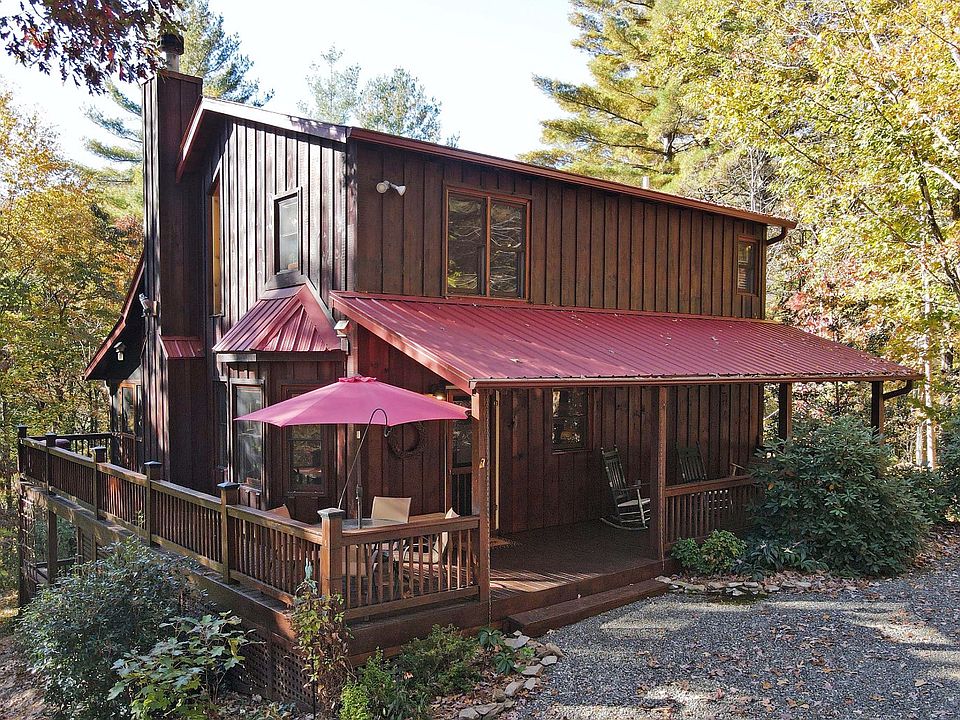 Blairsville Mountain Cabin featuring all wood interior. This gem is tucked in the trees with seasonal Mountain views. 2BR/2BA plus Loft and full Unfinished daylight stubbed basement. Multiple levels of porches and decks. Screened porch overlooks the leveled yard. Perfect for horse shoes, corn hole, fire-pit. Main floor boasts 2 story greatroom, gas log rock faced fplc, bayed dining area, generous bedroom, bath and laundry. Upper level has open loft and true Owner suite. Large BR, jetted tub and sep shower. Extended circular driveway for additional parking. Metal roof (new gaskets and screws), Large triple Architectural windows (New), Newer HVAC (gas furnace and elec air). Small branch borders back of property. A wonderful Opportunity. FURNISHED