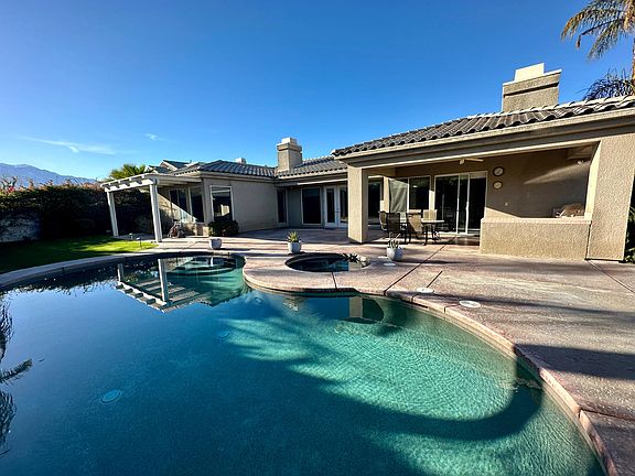Spacious 5-bedroom house available for long-term rent (6 months minimum) at $5,750 per month. The house features a fabulous Duchess plan with 3.5 baths (one has a steam room), including an attached casita with one bedroom. The kitchen is equipped with quartz countertops, a center island, and a large walk-in pantry. The one-story house is situated on a large lot and has no steps. The two-car garage has storage cabinets for added convenience. Enjoy the rear yard facing south with an extended covered patio and a built-in B.B.Q. as well as a Pebble tec pool and spa. The development offers six private tennis courts and three basketball courts for your entertainment. The house is fully furnished, and the tenant is responsible for paying for utilities. Conveniently located close to the casino, shopping, Mission Hills CC, and Westin Resort. Features Bedrooms: 5 (Including an attached casita) Bathrooms: 3.5 (One with a steam room) Square Footage: 3,332 Parking: Two-car garage with storage cabinets Pet Policy: Small dogs allowed Amenities Gourmet Kitchen: Quartz countertops, center island, and a large walk-in pantry Outdoor Living: South-facing rear yard with an extended covered patio, built-in BBQ, Pebble tec pool, and spa Community Amenities: Six private tennis courts and three basketball courts Security: Gated community Lease Terms Rent: $5,750 per month Security Deposit: $5,750 Lease Duration: 6 months minimum Utilities: Tenant responsible Location Close to the casino Near shopping centers Proximity to Mission Hills CC and Westin Resort - $5,750 per month - Small dogs allowed - Long-term rental (6 months minimum) - Steam room - Gated community - Attached casita - Office space - Renters pay utilities - $10,000 deposit
