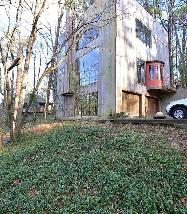 This architecturally significant, custom-designed home was once featured in The New York Times! Private setting w/open, spacious living areas, lots of glass & soaring ceilings, wonderful floor-to-ceiling built-ins. Outdoor decks in a beautiful, wooded setting! 2-car garage, newly created office & full bath on lower level. Newly remodeled kitchen, hardwoods, new paint, new hardware on hallway doors upstairs. Like living in a tree house! A very cool, very special home!