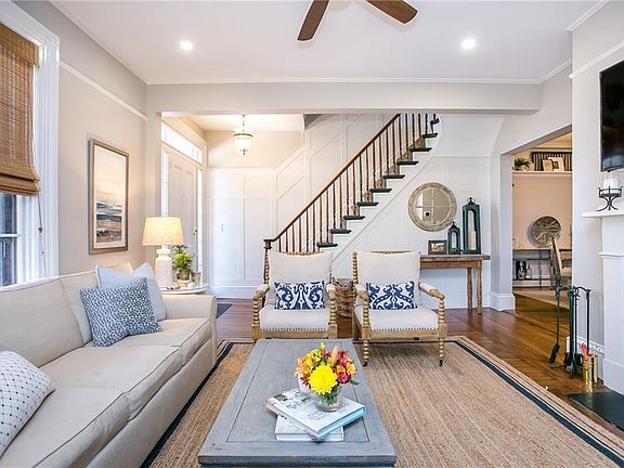 Walk to everything from this elegant Historic Hill Victorian steps from downtown Newport, but tucked away on a quiet, one-way street. This stately and stylish home features elegant, remodeled interiors while retaining it's period details. Four bedrooms, one on the first floor, each with their own private, full baths. Enter into a high-ceilinged, light-filled living room with large windows and wood burning fireplace. Large dining room, updated granite, stainless kitchen. A tranquil screened porch off the dining room leads to a private, fenced backyard with patio and perennial gardens, perfect for summer entertaining. The second floor has two large bedrooms with full baths, walk in closet, living room, bonus room and porch. A private side entrance leads to elevator to the 3rd floor legal, one bedroom, one full bath contemporary apartment with high ceilings, living room, dining area and kitchen. Option to earn income or keep for yourself. Central air throughout. Three onsite parking spaces complete this fabulous home.