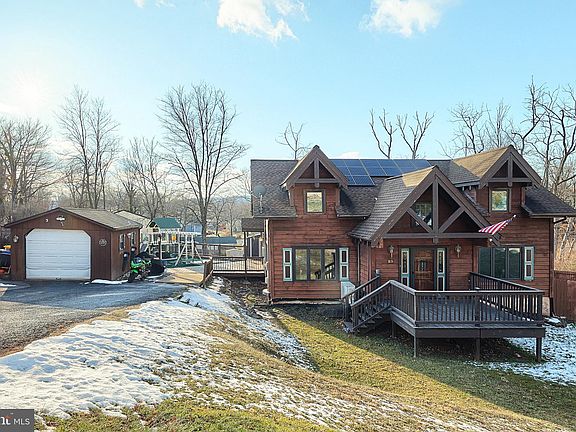Welcome to 25 Bunker Lane! This charming Log-style cedar home, nestled in a quiet neighborhood, offers the perfect blend of privacy and convenience, just minutes from Highway 83. Located in West Shore School District, this beautifully renovated 3-bedroom, 3.5-bathroom home is move-in ready and packed with modern upgrades. The open-concept living area features a cozy propane fireplace, creating a warm and inviting atmosphere. The updated kitchen includes stunning concrete countertops, a butcher block peninsula, and modern stainless appliances – perfect for cooking and entertaining. Through the kitchen leads you to a screened in porch for ultimate relaxation and enjoying the outdoors. The entire home has been refreshed with brand new flooring and 7 new mini-split units for efficient heating and cooling. The master suite has been completely transformed with a gorgeous new bathroom in 2024. The finished basement is complete with a new sliding glass door and a propane fireplace. Additional updates include a brand new water heater, ensuring convenience for years to come. With owned solar panels, this home is energy-efficient, helping you save on utility costs while being environmentally conscious. The detached garage and ample storage space throughout add to the practicality of this beautiful home. Don't miss your chance to own this move-in-ready gem with all the modern amenities you’ve been looking for!