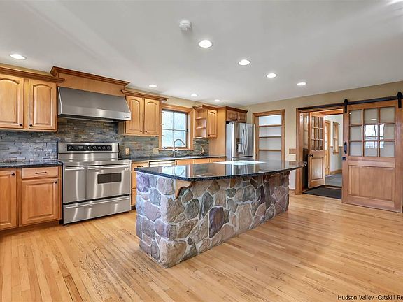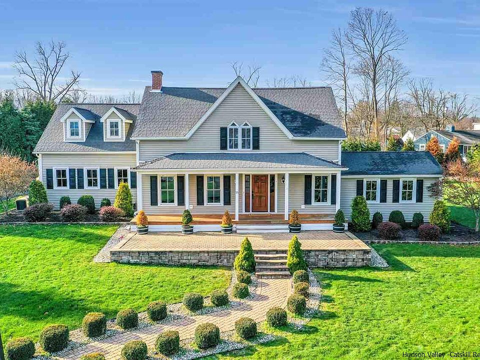 An American Colonial sited on one of the most prestigious streets in Kingston, and within walking distance of Uptown. The residence is graced with stone walkways, multiple decks, and elevated patios. The expansive 1.2-acre property is also well-shielded with mature landscaping giving the home a great sense of privacy. Step inside to a sweeping layout that marries an open floor-plan with intimate gathering rooms. The grand +/- 3,251 sq. ft. home has gleaming hardwood floors and is flooded with natural light. The first level features the living/ dining area which has glass doors that open to a fabulous stone patio, its the perfect spot for outdoor grilling, dining, and entertaining. Off the living area you will find a den/ family room, office, and half bath. The eat-in kitchen boasts stainless steel appliances, granite countertops, a stone island, spacious food pantry, breakfast nook, and a wet bar. Elevate to the second floor to find three bright and airy bedrooms and two full baths. The primary bedroom includes an en-suite bathroom with a walk-in closet, whirlpool tub and a double commercial steam shower. Another full bathroom on the second level includes modern finishes and a tile shower. The property is beautifully landscaped, its surrounded by Arborvitaes trees with a two-car garage to store all your toys, outdoor shed and whole house generator. Conveniently located minutes to Uptown Stockade district, farmers market, restaurants, NYS Thruway & just under two hours from New York City. Come take a look before its too late! **Furnace and AC unit only 2 years old** --