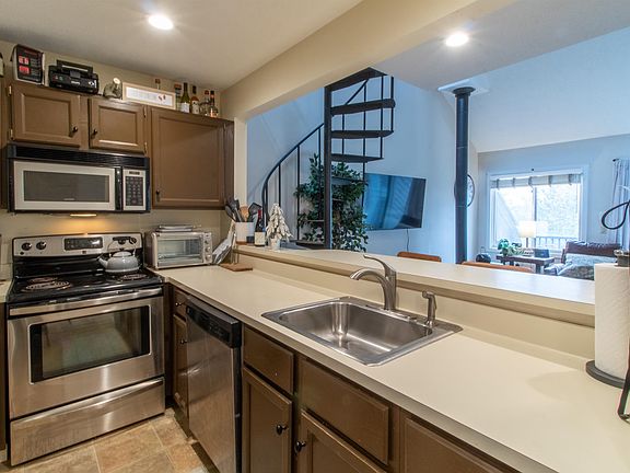 Numerous upgrades have been made, including a new standing seam roof and newly rebuilt direct vent Rinnai heaters, along with updated, interconnected hardwired battery backup smoke and CO detectors. This charming 2-bedroom, 2.5-bath townhouse offers a lovely view of the woods, and during the summer, you can enjoy sitting on the deck or opening the windows to listen to the calming sound of the nearby brook. You'll also find a covered entry from the parking area. Mountain bike trails are right outside your door, and after a day of skiing, you can effortlessly glide back home.