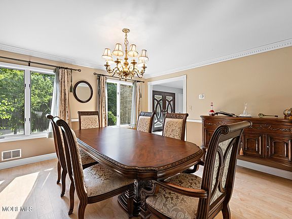 Tucked near the end of a private cul-de-sac, 25 Burr Avenue offers space, comfort, & a backyard resort oasis in one of Morganville's most sought-after neighborhoods. With 5 bedrooms (including one on the first floor perfect for guests or a home office), 3.1 bathrooms, & 3,561sf, there's room for everyone to spread out. The finished basement steals the show with a full home theater, while outside, a pool w/ waterfall, outdoor kitchen, & lush landscaping create the ultimate staycation setup. A 3-car garage adds convenience, & the home is move-in ready w/ a traditional layout. Indoor & outdoor entertaining is a breeze here! Near Route 9 for Whole Foods, dining & NYC transit, this is the one you've been waiting for. Top-rated Marlboro schools & Freehold Regional High School system!