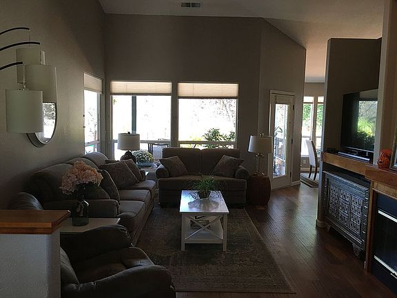 Come and see this immaculate 4BR/2BA home located in the highly desirable Butte Woods Subdivision. This home has been meticulously well maintained and is in turn-key condition. The living room features a high vaulted ceiling, beautiful hardwood floors, and a fireplace for those cold winter nights. Wall-to-wall dual pane windows line the back of the living and dining areas, letting the outdoors in and providing a view of the private, beautifully manicured backyard, deck, and above-ground pool. The kitchen has an abundance of custom cabinets, tile countertops, and a bar peninsula that separates the kitchen from the spacious dining area. This home has an inviting layout, as the master suite is situated at one end of the home, while the other three bedrooms and guest bathroom are situated at the other end of the home. The spacious master suite features a vaulted ceiling, walk-in closet, large floor to ceiling windows, and a glass door that exits to a covered patio that is perfect for enjoying your morning coffee. The en suite bathroom has a large vanity with dual sinks, jetted tub, and glass-enclosed shower. This property has been professionally landscaped front and back, and has an automatic drip system. The private backyard is fully fenced and includes several mature fruit bearing trees, two raised beds for gardening, and a shed with a sink and potting station. This home is shown by appointment only. Protective face coverings are required upon entry. Put this home on your must see list.