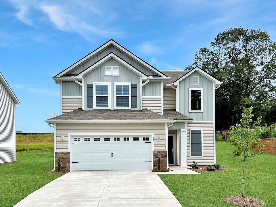This Home has a Self-Tour option! Welcome to your custom curated designed home by Cothran Homes. This lovely Kennedy plan has a beautifully designed kitchen with shaker style Cane Sugar white cabinets, Biscotti White granite countertops, York Drift island, satin nickel hardware and single bowl stainless steel undermount sink. For the cooks in the family, GE Stainless gas range, over the range microwave, dishwasher and refrigerator make this the perfect kitchen to entertain in. Open dining room flows right into the living room complete with gas fireplace, white faux blinds, and large windows lining both rooms bringing just the right amount of light in. This 3 bedroom, 2 ½ bath has 5” wide Polaris Lighthouse luxury vinyl plank flooring floors throughout main living areas and Midway Plaza Wheat Field Shaw carpet with 8lb pad in remaining bedrooms and flex room. Second floor flex room offers the right amount of extra space to set up the TV Den or Office you have always wanted. Laundry room includes hook up for washer /dryer and shelving for all your laundry accessories. Retreat into your owner’s suite with tray ceiling, LED disk lights, Minka ceiling fan and a to die for walk-in closet. Enjoy the lovely en- suite with large walk- in shower, York Drift double sink vanity and Origins Nova vinyl flooring. Lastly, a lovely patio right off your dining room where you can create your own private outdoor retreat and relax outdoors all year long.