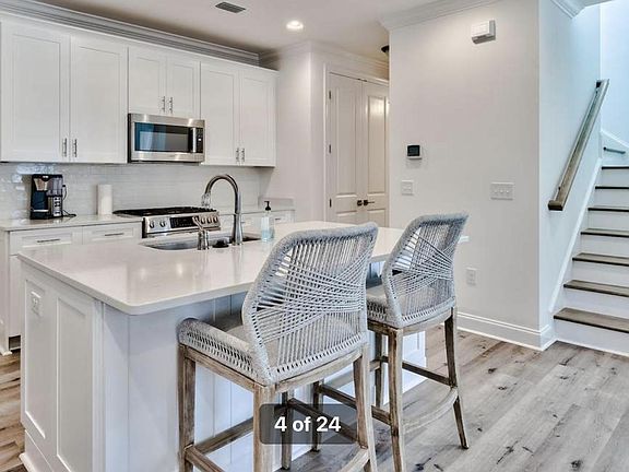 Live in Watersound Origins! Gorgeous, open floor plan with 9' ceilings throughout the home, quartz kitchen and bathroom countertops with under cabinet lighting, stainless steel Bosch gas appliances, wood cabinetry with soft close features, tankless water heater, crown molding and luxury vinyl flooring throughout, upgraded premium tile in master bath. Window coverings. 3 bedrooms, with large open area on the second floor. First floor master. 2.5 bathrooms. Large yard with screened in patio. Amenities to the community include the Village Commons Pool and fitness center, miles of nature trails, dock access to Lake Powell, unlimited golf. Landscape maintenance included in the rent. Renter pays all utilities. Owner pays for yard maintenance, pool, golf and Origins Amenities access. First and last months rent, and deposit due at signing.