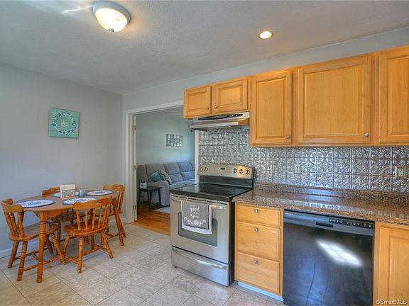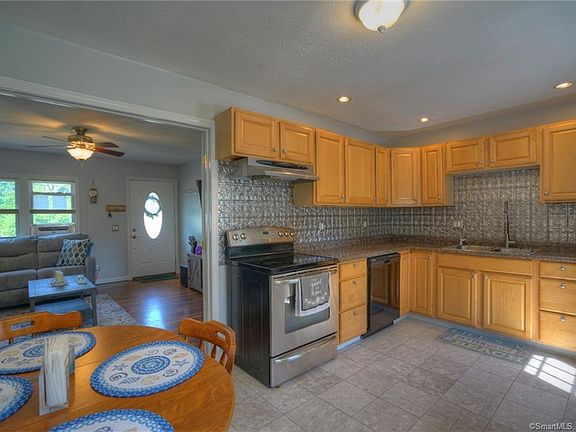 Desirable 3 BR Ranch on quarter acre + level lot with full basement and garage in pleasant subdivision of Mystic. Eat-kitchen has double-basin sink with walk-out to backyard deck and displays attractive French doors in the living room. Convenient main level bedrooms with hardwoods throughout majority of the home and special energy features include a programmable thermostat and active solar! Easy access to I-95 and close to major employers, Electric Boat and Pfizer.