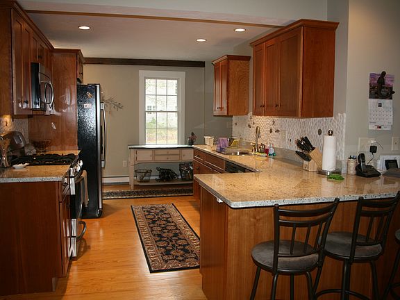 An original Saltbox style barn has been totally renovated and recreated into a charming blend of old beams and new construction. Quality craftsmanship and contemporary touches make this home stand out! Open floor plan, wood and tile floors, cherry cabinets, granite countertops, first floor master bedroom suite with vaulted ceiling, private bath with Jacuzzi tub and walk-in closet. Three more bedrooms up with a separate office/sitting area and another full bath. A 18x18 family room with vaulted ceilings and gas fireplace. Two car drive-under garage/workshop and gas hot water heat. Separate barn has two 10' garage bays with 8' doors, half bath and laundry. There is an additional 900 sf of living space in the 2 bedroom, 1 bath guest house overlooking the 13th fairway. Large outdoor shower. Security system. All this on a large 1.38 acre lot! Minutes from the Bay Beaches and Nickerson State Park. Please no realtors .