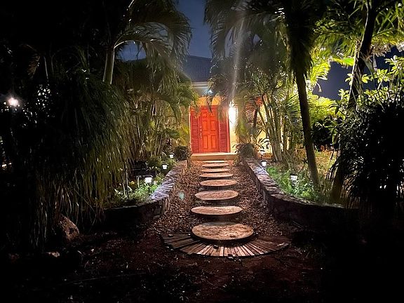 Private estate on 4.6 acres available. * 4BD/3BA, furnished home and semi furnished cottage. * Granite countertops, stainless steel GE appliances, mahogany cabinets and custom mahogany bar, washer/dryer, living room furniture, and beds. * Party deck with fire pit. * Video surveillance and home alarm system. * Gated and fenced property. * Pets welcomed with preapproval. * Bananas, coconuts, mangos, tamarin, aloe vera, neem, noni, and bamboo. * Hurricane-proof windows, 100-gallon 21kw diesel generator (can run 7-days). * 40-ft shipping container for added storage; available separately. * Located in Southwest St. Croix, USVI on the old Carlton Golf Course. * Very accessible to main thoroughfares for shopping, the airport or "Twin Cities" yet nicely secluded within the neighborhood. "Request A Tour" or "Apply Now" on Zillow at 25 Carlton Est. * Flexible terms. * First month rent and security deposit due at lease signing. * Last month's rent and proof of renters insurance due day prior to occupancy. * 90-day notifications. * Pets welcome with pre-approval, non-refundable pet fee(s) apply.