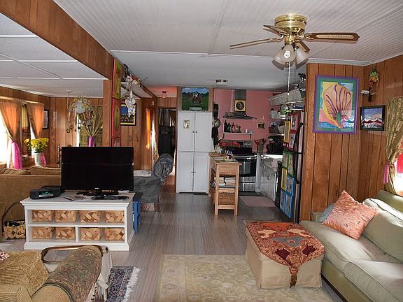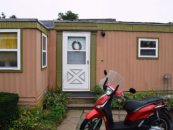 Very nice 1974 mobile home in above average condition. Featuring a very open floor plan due to the extra space in the living/dining area bump-out. Bedrooms on opposite ends of the unit for separation and privacy. Kitchen with lots of cabinets and counter space. All appliances including washer and dryer included. Separate laundry room. Two full bathrooms. Many upgrades - new roof, new Energy Star windows, new paint, gas hook-up, central air, new kitchen, new front door. On a quiet side street with a big lot. One storage shed. Park fee is $401 per month and includes water, sewer, trash, taxes. Renovated clubhouse with free wifi, heat pool. Spacious unit in move-in condition at a great price!!