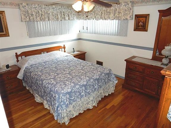 - Features: Kitchen Features / Eat-in Kitchen, Roof / Asphalt Shingle Roof, Exterior Description / Vinyl Siding, Exterior Living Space / Patio, Flooring / Hardwood, Age / Over 50 Years Old, Flooring / Wall to Wall Carpet, Cooling / Central A/C, Appliances / Dishwasher, Appliances / Range / Oven, Appliances / Refrigerator, Fireplace Count / 1 Fireplace, Garage Count / 1 Car Garage, Garage Description / Attached Garage, Water / Municipal Water, Sewer / Public, Heating - Fuel Type / Gas, Heating Type / Forced Air, General / Smoke Detector, Fencing / Wood Fence, Road Type / City / Town Street, Interior / Beam -Ceilings, Interior / Cathedral Ceilings, Exterior / Sidewalk, Fireplace Description / Gas, Interior / Blinds, General / Security System