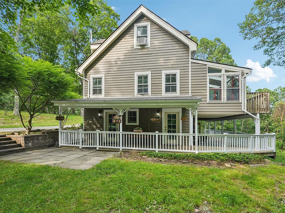 Escape to serenity in this beautifully crafted post & beam home, tucked away on a quiet 9.2-acre parcel on Cascade Lake Road. This one-of-a-kind property offers rustic charm and modern updates. The entry-level includes a bedroom plus a bonus room perfect for guests or a home office. A cozy tiled family room with a wood stove invites you to unwind on cooler nights. There's also a full bath w/claw tub. Step upstairs to find warm wood tones, wideboard floors, and a dramatic floor-to-ceiling stone fireplace anchoring the spacious great room. The open-concept kitchen features butcher block countertops, a large walk-in pantry, and flows seamlessly into the great room—ideal for entertaining and everyday living. The 4-season sunroom—with new skylights and roof—offers flexible space for an office, studio, or reading nook. Upstairs, you'll find a charming loft-style primary bedroom with two walk-in closets, creating a private and peaceful sanctuary. There's also a garden shed greenhouse & chicken coop! Just minutes away from vibrant downtown Warwick with all it has to offer and down the road from Cascade Lake.