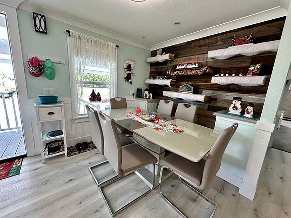 Stunning Fully Remodeled Waterfront Home in a Premier 55+ Community Welcome to modern coastal living on the tranquil freshwater canal of Cow Pen Slough. This beautifully remodeled 2-bedroom, 2-bath manufactured home delivers elegant finishes, exceptional outdoor spaces, and just steps from your backyard, an angler's treasure where snook are known to gather - you'll enjoy a rare blend of luxury and natural Florida beauty. Step inside to an inviting open-concept layout featuring quartz countertops, a matching full-height backsplash, and a charming wood accent wall in the dining area with seating for six. Cove molding throughout adds refinement, while a corner kitchen sink facing the clubhouse keeps you connected to the heart of the community. The kitchen is truly a chef's delight, offering an impressive stainless steel hood with custom wood trim, propane gas stove, and double oven-ideal for everything from intimate dinners and grand entertaining, The elegant lanai with coffered ceiling extends your living area and opens to an expansive paver terrace, ideal for hosting gatherings under the Florida sky. With seating for eight, a retractable awning, and sweeping views of the tranquil canal, this private outdoor sanctuary is truly exceptional. A new 2025 double-wide carport and paver golf cart path enhance the home's luxurious curb appeal, while the included golf cart with custom seat covers ensures effortless travel within the community. Inside, comfort continues with thoughtfully designed spaces: • Guest bath with coastal-inspired wave tile and corner seating • Guest bedroom with a double sliding-door closet plus a fully shelved walk-in closet for maximum storage • Primary suite featuring a double sliding-door closet, quaint vanity area, large walk-in storage closet, and a impressive bath with dual granite sinks and a custom-tiled shower with corner seating Laundry is simple and organized in the finished shed, complete with recessed lighting, vinyl flooring and plentiful workspace-perfect as a hobby room, workshop, man cave, or she-shed. Located in a resident-owned, highly sought-after 55+ community, you'll enjoy an active lifestyle with an oversized pool with lap lanes, pickleball, tennis, and shuffleboard courts. It's a warm, welcoming neighborhood where friendly faces are the norm. You'll also love the superb convenience-minutes from shopping, dining, SMH Venice Hospital, and just 4 miles to the North Jetty and area beaches. Siesta Key Beach, famed for its cool-to-the-touch, powder-soft sand and ranked #2 in the U.S., is less than 15 miles away. This home blends luxury, comfort, and Florida outdoor living at its finest. Other Important Information: HOA fees are paid quarterly, $1315 and include water (we own water treatment plant), sewer (we own sewer treatment plant), lawn maintenance, and 200 channel Fiber Optics TV and Internet. Pet Restrictions: Two Indoor Cats. Service and Emotional Support Animals when they meet the ADA and Florida state laws. ESA's will have club authorized forms completed, reviewed, and approved prior to allowing animals on the property. Club Approval Required: Criminal and Financial background checks are required. A check payable to KGC for $250 must be submitted to management at least 30 days prior to closing before residents can be approved. Lease Restrictions: Criminal background check on ALL people residing in leased property. 1 Month minimum rental.