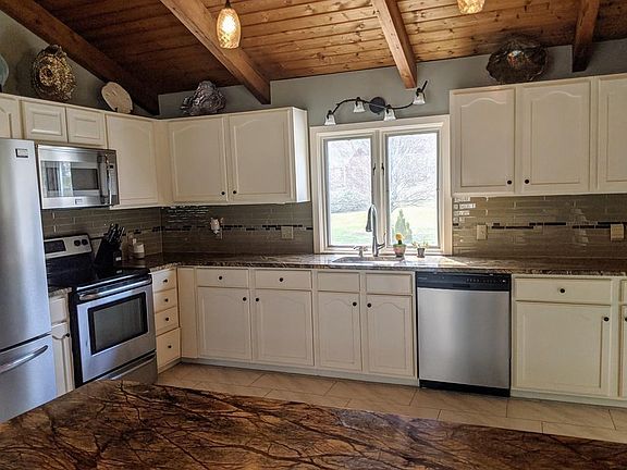 - Kit Dscrp: Countertops - Stone/Granite/Solid, Flooring - Stone/Ceramic Tile, Breakfast Bar / Nook, Stainless Steel Appliances, Ceiling - Beamed, Gas Stove, Lighting - Pendant, Ceiling - Vaulted
