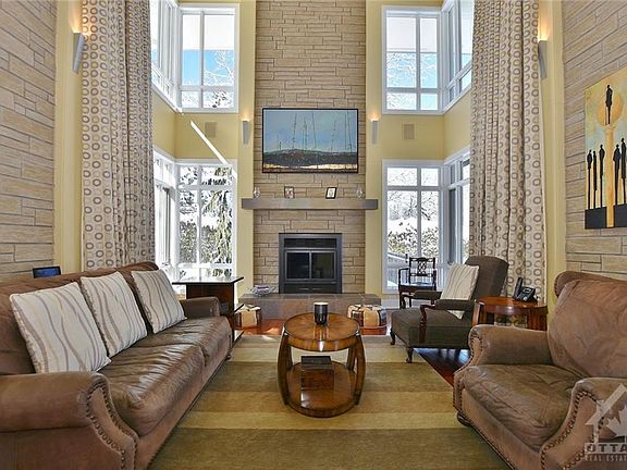 This gorgeous custom designed home is situated on a premium lot with a refreshing panoramic view of Gatineau Hills and Ottawa River. Build in 2005 with high quality materials that will ensure luxurious living for years to come. 5 bed/ 5 Bath with loft. Gleaming hardwood floors throughout the house and an addition of heated floors in all bathrooms. The grand Foyer welcomes you with a 22 feet high ceiling next to the family room with a wood fireplace.The kitchen is designed for the chef at heart and equipped with high end appliances, granite counter top. The dining room leads to the formal living room with large windows for the view of the swimming pool and beautiful landscaping. The basement is designed for your entertainment needs with a gas fireplace and wine cellar with a bedroom and full bath. Ensuite bath in the master bedroom can create your own relaxing spa experience. Please refer to the attachment for more features of the house.Salt water, heated swimming pool with updates.