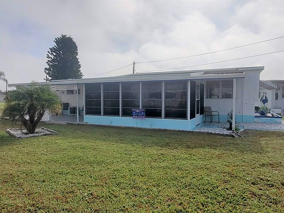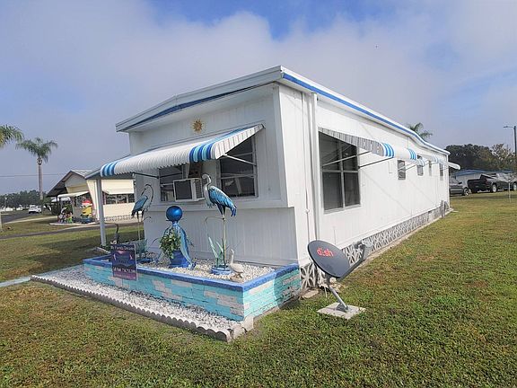 Just Listed $31,900 Furnished This cozy two-bedroom one bath home comes furnished. This home has lovely curb appeal with its rock landscaping and Florida décor. Side driveway, carport and storage shed. The large, enclosed lanai has vinyl windows and two exterior doors to the front and back of the home. This is a great space to relax or entertain your guests. Stepping inside the home you enter the open living room and kitchen. The living room has a beautiful palm fan, carpeting and a newer couch. The spacious eat in kitchen has plenty of cabinet space and updated white appliances. The guest bedroom has double closets and a built-in dresser. The bathroom is a tub/shower combo, with storage underneath the vanity and a linen closet. Large master bedroom with double closets and a built-in dresser. The bedroom accommodates a queen-sized bed and side tables comfortably. New metal roof and awnings 2019. This cozy home has been very well maintained. It's clean and move-in ready. Drop your bags and head to the pool. Call today to make this your Florida dream home. Coach House is an age qualified resort community of manufactured / mobile homes. The Coach House has 2 Recreation halls - one attached to the pool area with pool tables and ping pong. A very nice relaxing pool overlooking the lake, 4 fishing ponds, an exercise room, laundromat, workshop for the residents, Boat & RV storage, shuffleboard and lots of clubs and activities. The Park has a very warm community feel. The lot rent in The Coach House is based on the homes' location. Not only does the monthly rent cover all of the amenities of the community listed above, it also covers almost all other monthly expenses such as; water, sewer, trash pickup, all property taxes, lawn maintenance. . .pretty much every monthly expense except electricity and internet. All listing information given to us is considered appropriate and reliable but always recommend Home Inspections by independent companies who have a background and thorough understanding of manufactured homes. We cannot guarantee the accuracy of information given to us or the condition of the home. Lot rents are determined by the community office not our company.
