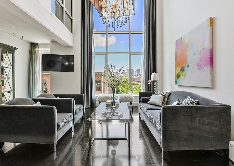 Spacious Fort Point loft like duplex, 1.5 beds, 2 full baths in concierge building within easy walking distance to Seaport, Downtown and South Boston. This lovely home features 18 ft ceilings with floor to ceiling windows and a great city view. Open concept kitchen with Viking appliances, gas stove, beautiful black granite counters and backsplash looks on to the very open layout of living dining area. On to the second level we have a beautiful master bedroom which can accommodate a king bed, lovely natural light coming thru windows treated with gorgeous custom shutters, built in wardrobe for additional storage and the walk-in closet. The master bath with large walk in spa like shower has recently been renovated with the utmost attention to detail of beautiful ceramic tile floors, shelving for linens and custom new vanity. Adjacent to master you have a good size den/office with builtins. Laundry in unit. 1 underground garage parking
