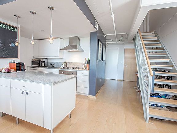 Seaports upscale loft building, 25 Channel Center. Steps to Boston hippest restaurants and South Station and Financial District. Dramatic 8th and 9th floor duplex with 20' ceilings and a wall of glass with an electric shade. Hardwood floors, open kitchen with Viking gas stove, viking fridge and dishwasher, granite counter tops, washer/dryer in the unit, master suite with custom walk in closet and custom sliding wall with built in t.v., Bathroom with separate soaking tub and walk in shower, linen closet, second bedroom with balcony overlooking living space and custom lighting, second bathroom with tub, concierge and on site management and a garage parking space #79 included! $500. move in/out fee.