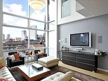 City Chic.Stunning 2bd 2.5 bath,1768 sq ft duplex w/soaring 18 ft ceilings & amazing city views has all there is to offer.2 levels of luxury.This boutique loft features maple hardwood floors, wonderful kitchen with viking appliances, stainless steel back splash. built in dining room contemporary buffet.Master with walk in closet, en suite bath.Large open study overlooks dramatic living room below. private balcony, garage parking #66 ,concierge building,steps from Financial Dist