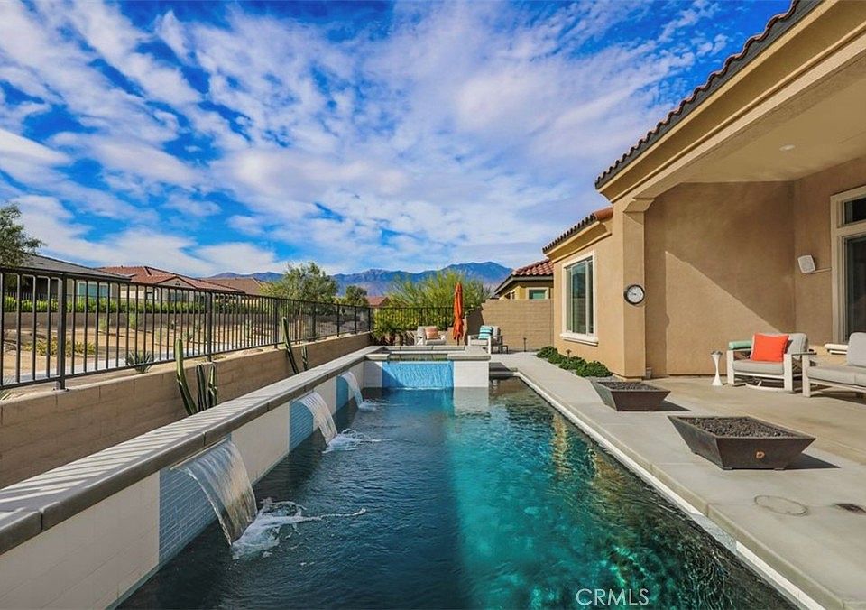 PRICE REDUCED! Welcome to this beautifully designed home situated in Rancho Mirage's Del Webb 55+ community which offers year-round resort style living. The home offers an open concept layout with vaulted ceilings, beautiful marble floors and counter. The kitchen is equipped with high-end Kitchen Aide Gourmet appliances, a generous pantry and an extra-large island. The tasteful upgrades make this home stand out from the rest. The living room looks out to the beautiful private pool with waterfalls and spa. The pool is surrounded by firepits, a large BBQ, blue tooth speakers and a covered patio perfect for quiet mornings or an evening of entertainment. This home has it all, comfort, style and functionality with a two-car garage plus a separate "golf cart" garage that can be used as a workshop or serve as storage for your holiday decorations and more. Avid golfers will appreciate the 4-minute drive to the Gary Player & Pete Dye Championship Golf Courses. In addition, the garage is equipped with 220 voltage outlets for EV hookup and leased Solar Panels which help immensely with the cost of electric bills. The home is move in ready and includes all appliances. There is a 2.75% VA Assumable loan available for qualified buyers on the original mortgage balance. You do NOT need to be a veteran to qualify!! Seller is Motivated. Don't miss out. Bring Your Offer.