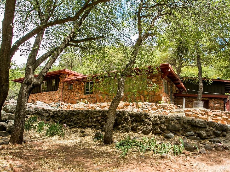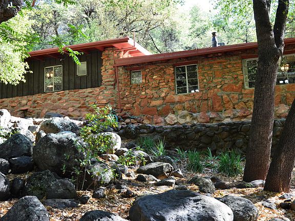 The perfect Oak Creek Canyon getaway! Rustic, charming cabin; resting just one lot from the creek and beneath a canopy of ancient Oak trees and towering Sycamores. Okay for nightly vacation rentals. 2 bedroom, 2 bath main cabin plus 1 bedroom, 1 bath potential guest loft over garage. Relax and enjoy the serenade of the tumbling waters of Oak Creek! Original, hand built home with original stonework and some recent updating: kitchen, bathrooms, heating/air conditioning and flooring. Two car garage and comfortable front porch. Convenient laundry room included. Original septic systems in place and operable.