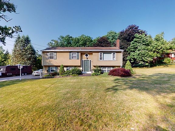 Raised ranch with above grade in-law apartment. The total home includes eleven rooms, four bedrooms and two full baths. The main living level features an open floor plan. The kitchen/dining room has loads of oak cabinets and granite countertops, a skylight and a slider that overlooks the inground pool and large back yard. This level also includes an unheated sunroom, three bedrooms and a recently fully renovated full bath. The lower level is set up as a complete in-law, nanny or teen suite/apartment with a kitchen dining room combo with separate entrance. A living room with a flue for a wood or pellet stove, a full bedroom and a second full bath with shower and Jacuzzi style tub. This home sits on a half-acre plus level lot with an inground pool and plenty of parking. Don’t miss this solid home at a great price!!