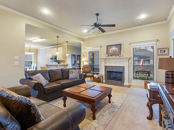 Experience the charm of this exceptional four-bedroom, two-bathroom home, featuring an expansive open floor plan and abundant natural light. Elegant crown molding extends throughout, complementing the separate dining room and the spacious Great Room with its cozy fireplace. The eat-in kitchen boasts stainless steel appliances, ample counter space and cabinetry, and a generous pantry. Privately situated, the Owner’s Suite offers a relaxing garden tub, dual vanity, and a spacious walk-in closet. Recent updates include a new roof in 2019 and a water heater replacement in 2024. The refrigerator, washer, dryer, sofa, and loveseat convey with the property. Don’t miss this incredible opportunity. Schedule your tour today! Agents see remarks.