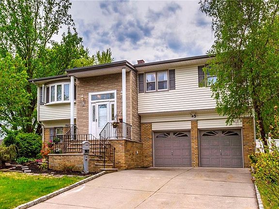 OVERSIZED BILEVEL ON 60X215 PROPERTY*4 BEDRMS*3 BATHS*EAT-N-KITCH W/WOOD CABINETS,CORIAN*OPENS TO BONUS RM*FAM.RM W/BRICK FRPLC,SLIDER TO PATIO**2-CAR-GAR*BSMNT*2 SKYLITES*NEWER ROOF,FURN,CEN.AIR,H2O HEATER*TREX DECK*REPLACED WINDOWS*VINYL SDNG*LIV&DIN.RMS W/VAULTED CEILINGS*BAY WINDOW*1 BLOCK TO NY BUS*NO SHOW TIL 5/1