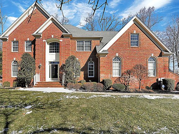 This majestic brick front 5 bdrm Colonial is what dreams are made of w Brazilian cherry floors, skylit fam rm, designer KIT, & lux mstr suite w frplc & sitting rm on a lovely cul de sac! Walk to town! Stylish details abound! Picture wndw illuminates a grand 2-story foyer leading to the formal sunken LR & DR adorned w tray ceiling & wainscoting. Fan topped wndws add beautiful natural light! Skylit fam rm offers a heartwarming frplc for casual get togethers. EIK w 6 burner range, granite counters, & pantry for easy meal prep! Skylit breakfast rm & sliders to a spacious deck & patio. 1st flr office/bdrm. Rejuvenate in the mstr suite w 2-sided frplc into the sitting area, 2 WICs, & lux bth w jetted tub, dual sink granite topped vanity & shower stall. 4 addl bdrms w Jack-n-Jill & full bth. Fin bsmnt & 3 car garage.