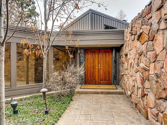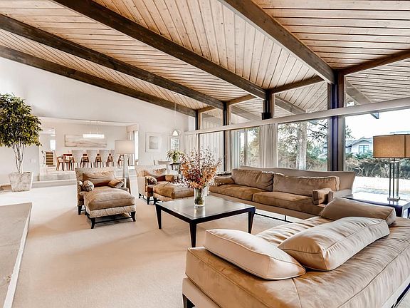 An architectural masterpiece! Built in mid-century modern style, this ranch style home is exquisitely appointed while capitalizing on the beautiful outdoor landscape. Located in the Cherrymoor neighborhood in Cherry Hills Village. As you enter through the stunning carved front doors with leaded glass you will be impressed by the soaring vaulted tongue-in-groove ceilings that span the great room which includes a moss rock gas fireplace, built in entertainment center and wet bar with Viking wine refrigerator. The wall of west facing windows and patio doors allows the outdoor living-in with access to the stamped concrete patio. The owners suite boasts 2 private patios, double walk in closets and an amazing 5 piece bathroom with jetted tub. The remodeled kitchen has abundant glass door cabinets, slab granite, sub zero refrigerator, 2 cabinet front dishwashers, Dacor double ovens and 6 burner professional grade gas cooktop. You will enjoy plenty of room on your 2.14 acre lot.