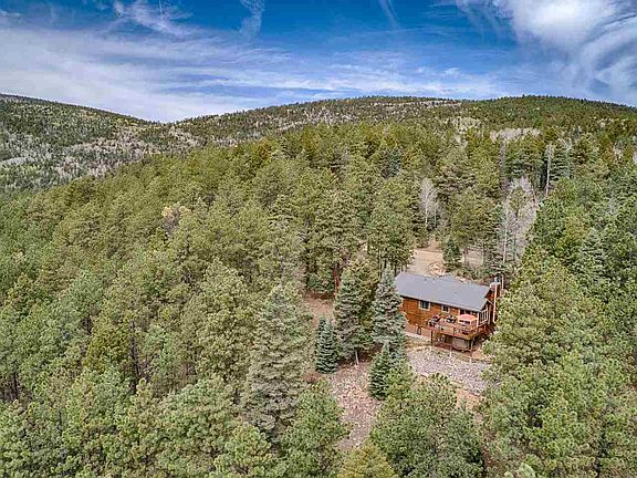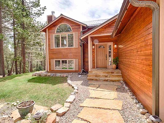 Welcome to 25 Chino Terrace, a well maintained home in the mountains of Angel Fire, New Mexico! This home is perched on over 1 acre, providing privacy and great views of Angel Fire Resort's ski mountain. Located just down the street from the Greenbelt trails system, this home provides easy access to Angel Fire's hiking and biking trail network; a perfect home base for your mountain adventures! The exterior of this house is in great condition with stained cedar siding and a pro-panel metal roof added only 4 years ago. The exterior also includes flagstone walkways, rock borders, a pull through driveway, and a parking space for a golf cart under the deck. The home is a split level. The upper level features a great room with an abundance of windows, vaulted ceilings and a gas burning fireplace. The kitchen features stainless steel appliances, solid wood cabinets, tile countertops, and a nice dining area that leads out a large deck. The master bedroom features a large closet and ensuite bath. The first guest bedroom and first full bath are also on the upper floor. The lower floor features a study, a second living area, a full bath, and two more guest bedrooms. This home also has a two car garage, comes mostly furnished, and is ready for you to move in!
