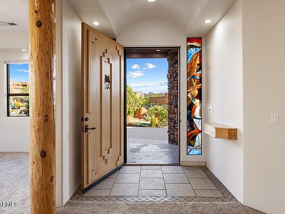 Impeccable single-level Sedona residence featuring 3 bedrooms plus an office and formal dining room with a touch of sophistication. Bright, spacious interiors with no steps and expansive windows showcase iconic red rock views, while a 4-foot-wide entry door and direct patio access from the primary suite and living room create seamless indoor-outdoor living. The former owner, a master wood craftsman, left his artistry throughout with custom cabinetry, detailed drawers, and pull-outs in every room. Ideally located near hiking trails, shopping, medical, and all Sedona amenities—with easy backway access to 89A to avoid traffic. Only an hour to Flagstaff - less than two to Phoenix Sky Harbor. A rare combination of handcrafted detail, space, and convenience in one of Sedona's top neighborhoods!