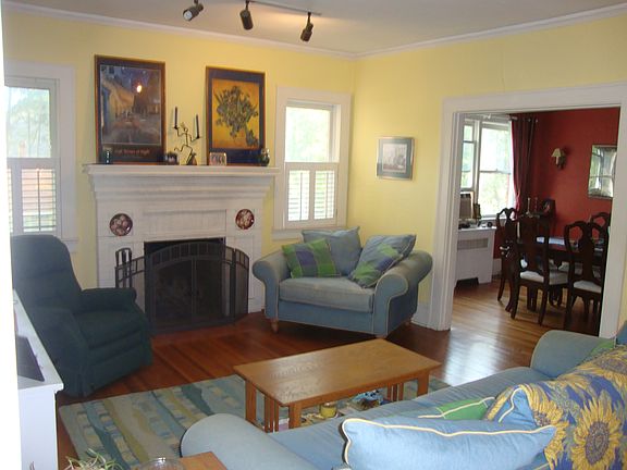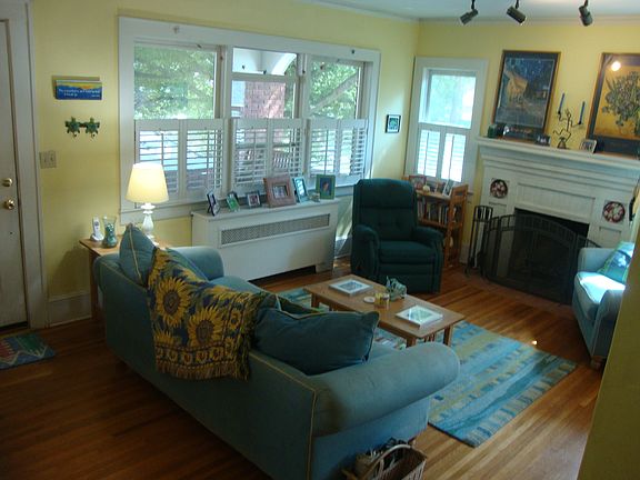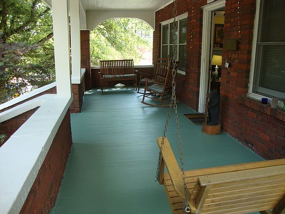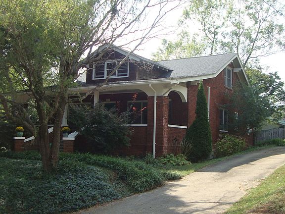 Authentic Arts and Crafts Bungalow. 4BR/2BA in prime location in West Asheville off Haywood Road. Wonderful tree-lined neighborhood with sidewalks. Easy walk to elementary school, restaurants, bakery, coffee shop, library, and more. Directly across from park/playground. Lots of attention to original 1930's detail throughout this charming home. Stately brick home features large rocking chair front porch with swing. Spacious kitchen w/ new stainless steel appliances, custom cabinets and breakfast nook. Brick wood burning fireplace in living room with plantation shutters. Original hardwood floors have been refinished. Formal Dining Room. 9' ceilings and large windows allowing lots of natural light throughout. MBR with sitting area. True Art Deco style downstairs bathroom with large tub and glass block. Finished living space upstairs can serve as master suite with bathroom and skylight or as family bonus room. Private fenced backyard with new multi-tiered deck, landscaping with native plants, south-facing garden space, and small tranquil decorative pond. Large daylight basement for lots of storage. Dormer with cedar shingles. Walk-in attic space is great for storage or for refinishing as an extra room. Detached single car garage. New roof 2012, tankless water heater in 2014. New ductless HVAC upstairs in 2015. A true rare find @ 1922 sq ft. $384,000. Brokers Protected.