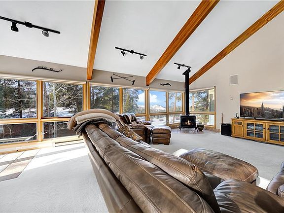 Outstanding architectural design in this spacious 5 bedroom home with exposed beams, sloping roof lines, and tons of room for family & friends. This home is bathed in sunlight throughout the day and offers multiple decks and a hot tub for great outdoor living. Enjoy views of Buffalo Mountain and the fairways of the Keystone Ranch golf course. Walk to the pool & clubhouse for lunch or dinner in this timeless Keystone Ranch location. Quiet, peaceful, and a mountain setting like no other.