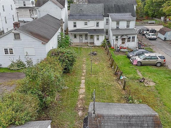 Investor’s special, potential abounds! A covered front porch offers two entries into the home’s main level. This level offers abundant living space and conveniences. Spacious living and dining rooms lead into an eat-in kitchen with pantry room to the rear. The other side offers a second potential kitchen, currently main-level laundry room, as well as a large entry room with water closet. Two separate staircases lead to the second level offering four bedrooms, a shared space with multiple closets, full bath, and spacious landing – an excellent home office. Outside, the yard offers a shed and garage! Currently the property functions as a single dwelling, however with this abundance of space, potential is everywhere! See how you can make it yours or add to your portfolio!