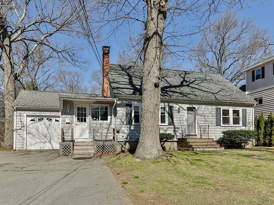 Just Reduced to $499,900. Won't Last! Move right into this spacious (1,793 sq' not including semi-finished basement) 7 rm, 3-4 Bedroom, Cape style home on an oversized (20,233 sq') private lot on a quiet, dead-end street. This stately home includes a beautiful, classic first floor layout with a large, formal fireplaced living room with built-ins, large sun-filled, cabinet-packed kitchen which opens to a large dining area. First floor bedroom w/built-ins, dining room/office or 4th bedroom and first floor full bath. Second floor boasts two spacious bedrooms both with built-ins. Good sized semi finished basement and three season enclosed front porch. Features a 1 car attached garage, gleaming hardwood floors (just refinished), brand new professionally painted interior and trim, bullnose staircase, large deck off the back, newer roof, heat & windows.
