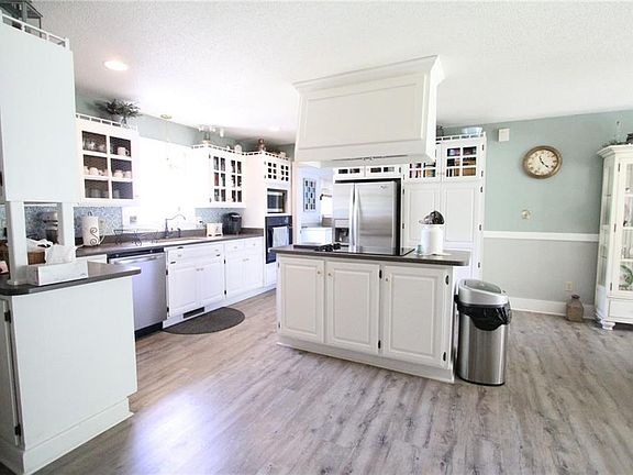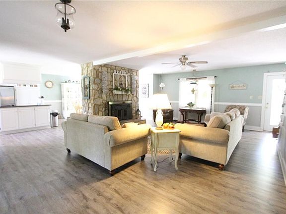 Truly a jewel of a home nestled on 4.77 acres with Live Oaks lining the driveway and adorned with azaleas, this country style home offers a long front porch to welcome you in. The large great room is highlighted with a stone fireplace with insert, an open flow to the kitchen and dining room complete with bay window, cook top island and lots of storage. New vinyl plank flooring, accents of shiplap. The laundry room is huge and offers a full bath for showering off coming in from the yard. Add a lovely sunroom with lots of windows and wonderful views and it flows onto a spacious deck. Master bedroom on main level with walk in closet and full ensuite bath (more shiplap accents). Upstairs are three additional bedrooms and a bath. There's a bonus room over the garage that has been the kids hangout. Attached double garage plus a separate workshop that's 24 x 36 and there's additional storage overhead. RV storage shed too. Lots of fruit trees from kiwi, pomegranate, date, hazelnut and large garden area. There's additional space in the rear for planting a full garden. Truly a special paradise and it's move-in ready.