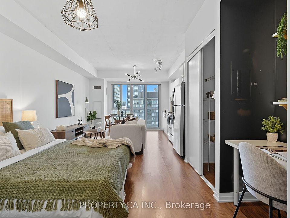 Bright, stylish, and smartly designed, this 442 sq. ft. studio offers modern living with no wasted space. Floor-to-ceiling windows showcase a sunny Eastview, while a 77 sq. ft. private balcony extends your living outdoors. Inside, enjoy a sleek 4-piece bathroom, two closets for ample ensuite storage, full-sized stainless-steel stove and fridge-freezer - rare in studio living - and ensuite laundry. One titled parking space and storage locker add everyday convenience. The building elevates your lifestyle with 24/7 security concierge, a gym, recreation & party rooms, plus a rooftop garden with BBQs. In Toronto's revitalized Regent Park, you're steps to the Pam McConnell Aquatic Centre, Regent Park Athletic Grounds & Community Centre, local cafés, and eateries. Located just 12 minutes by streetcar to Yonge-Dundas and 3 minutes to the DVP this home perfectly balances comfort, community, and connectivity. Building Amenities Include: Well equipped gym; guest suites; party and rec' rooms; rooftop garden patio w/BBQs; visitor parking and 24 hour security concierge.