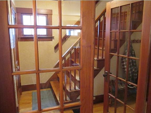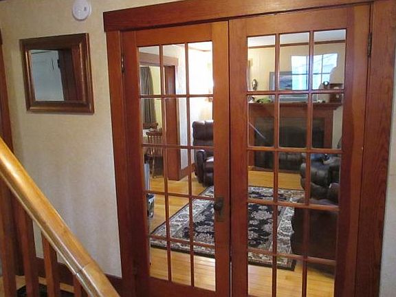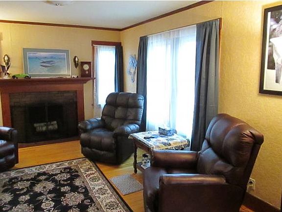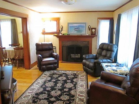 In town 1930's Charmer within walking distance to downtown and most everything you need. From the entry foyer you'll find gleaming hardwood floors, natural wood work, French doors, wood burning fireplace in LR, updated kitchen with white cabinets, Corian counter and stainless appliances. Formal dining with new door to back yard. Newly remodeled bath. An extensive list of big ticket improvements in the last couple of years incl: New furnace, central air conditioning, replacement windows, wiring, roof shingles, chimney repointed. For the mechanic or hobbyist, an oversized, heated and insulated garage. New paved driveway and sidewalk.