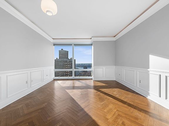 The Residences at The Mandarin Oriental offer a incomparable lifestyle for the busy New Yorker, or world traveler. Apartment 55F is the perfect two bedroom boasting incredible skyline and river views from its perch over Manhattan through floor to ceiling windows. Elegant finishes include herringbone hardwood floors throughout, crown moldings, cove lighting, remote blinds and stunning marble bathrooms. An efficient kitchen offers Miele appliances and the home has central air conditioning and a washer/dryer. Sit in your living room and get lost in the vistas this rare apartment has to offer.